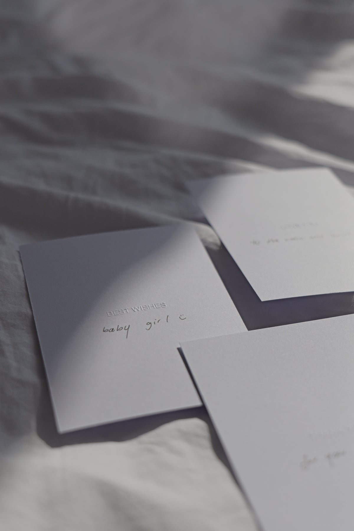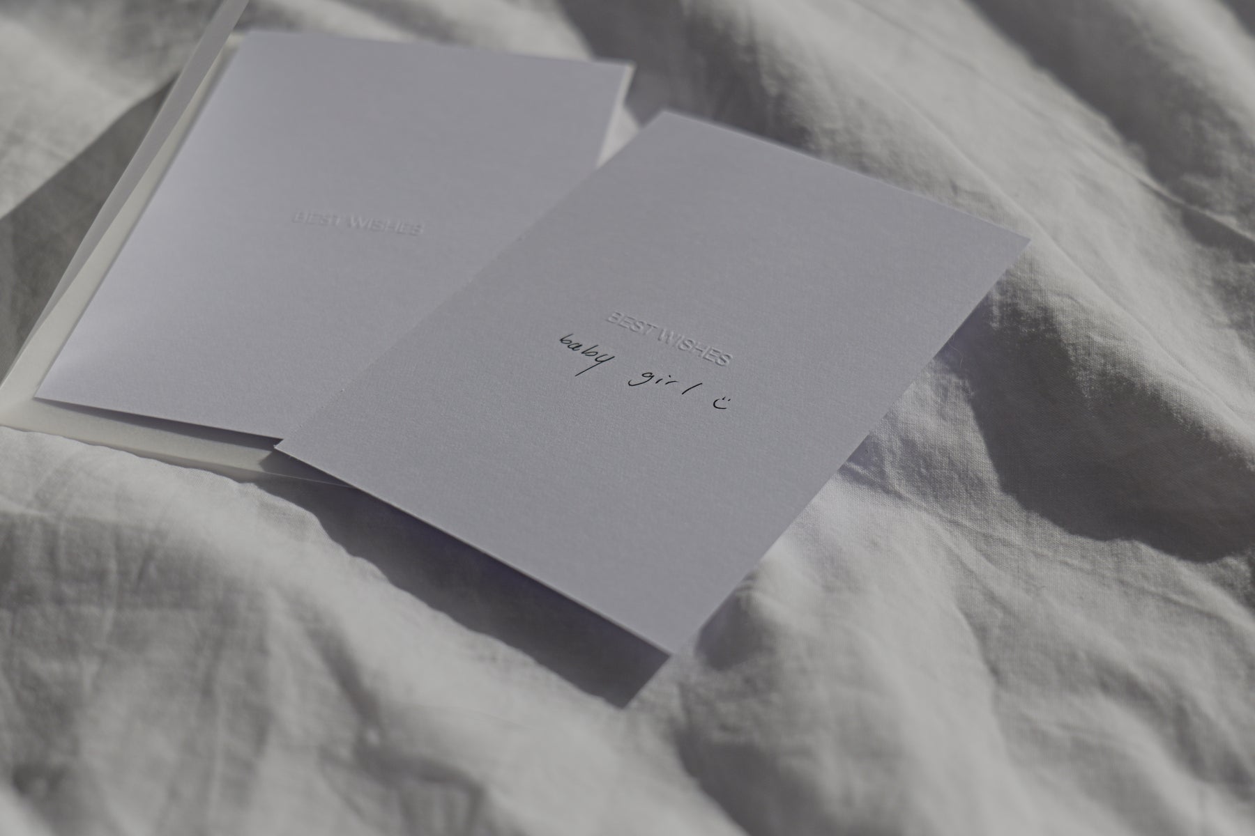 Jede Karte wird von mir einzeln von Hand auf hochwertigem, weißem Papier geprägt.